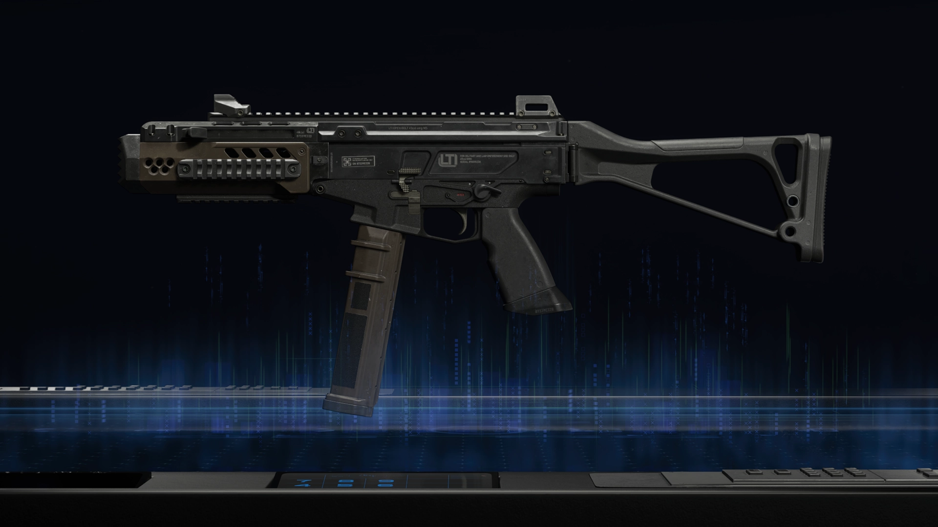 Full-auto submachine gun. Very low recoil and good headshot damage. Lower handling, mobility, and range.