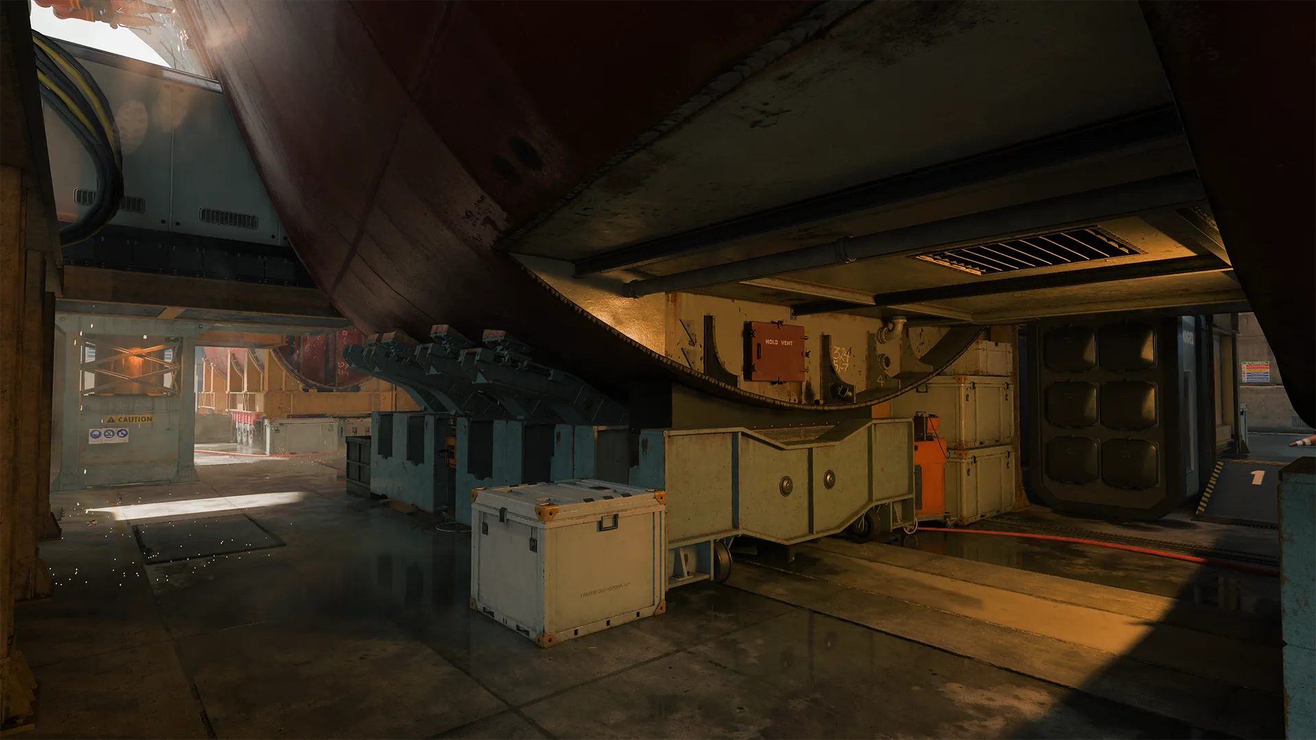 Both ends of the map feature a small interior space with a window looking straight down the Underside of the ship. Use these sightlines to target enemies in the middle who often wield close-ranged weapons expecting a closer fight and be aware of them when it’s your time to battle in the center.