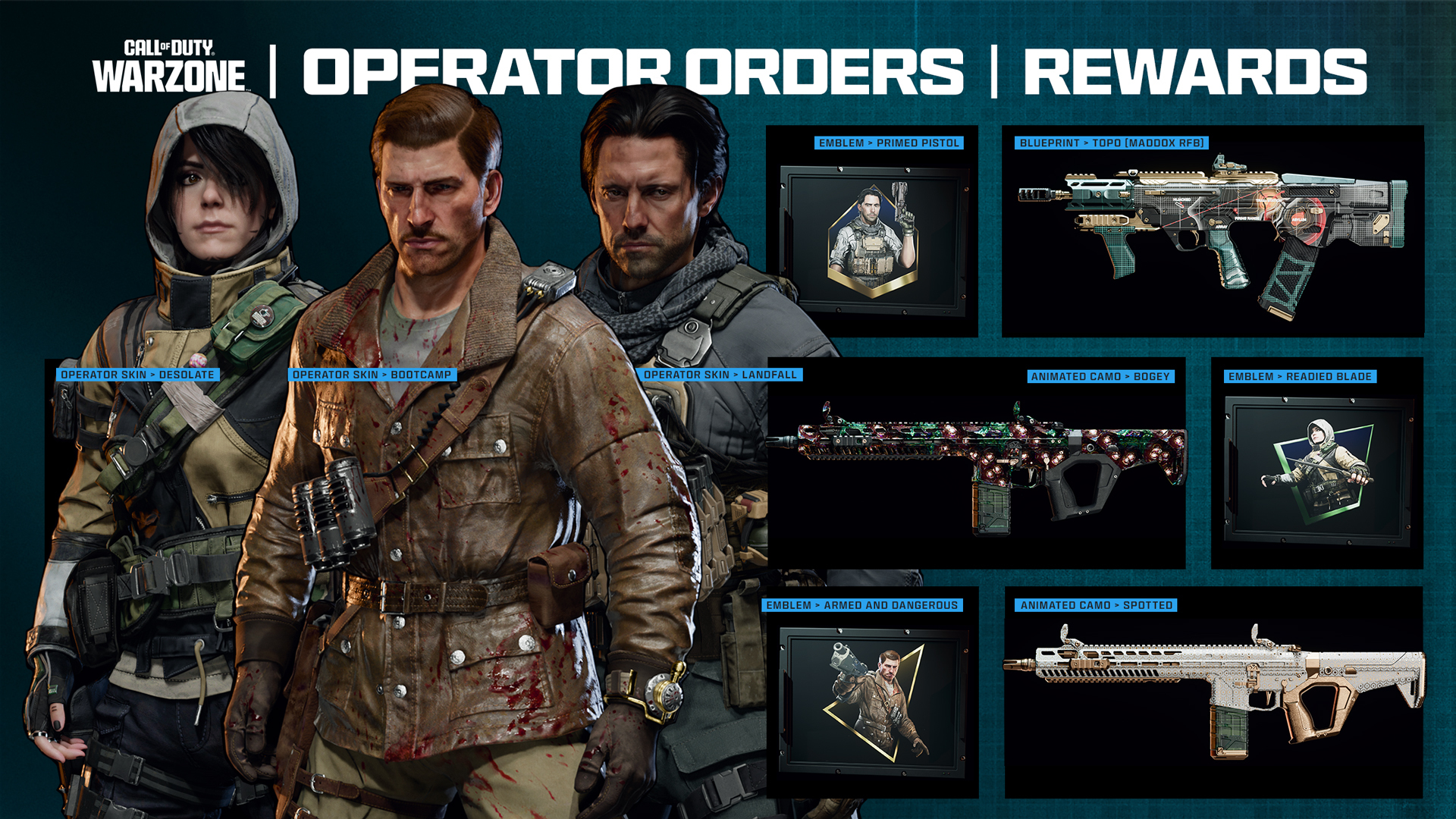Amass XP across all four game modes to progress and unlock key items like the Swordfish A1 Marksman Rifle and Echo 12 Backlash Launcher Kit in the Free Track or purchase access to the Paid Track for additional rewards like the “Waylay” DS20 Mirage Assault Rifle and “Field Hunt” RK-9 SMG Weapon Blueprints.
